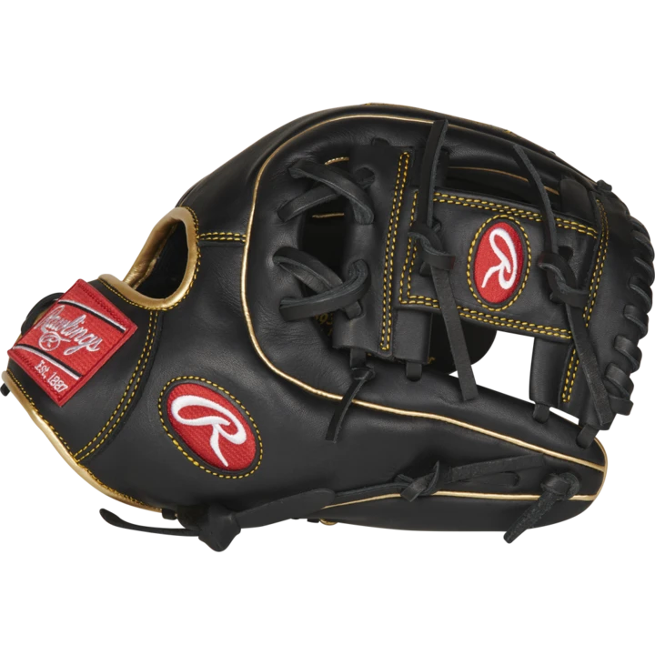 To make this Rawlings infield glove an ideal option for infielders, Rawlings designed it with an I-web design and an 11.5 inch frame. The glove contains Black leather that features gold welting and accents for a sleek and classy look. Do not waste hundreds of dollars. Get professional quality with the Rawlings R9 11.5 inch infield glove R9314-2BG. As a Rawlings product, consumers can have full confidence in the quality of this model. Rawlings has been a staple in baseball since 1887 and continues to be a top competitor. Buy this Rawlings infield glove from Baseball Bargains today!